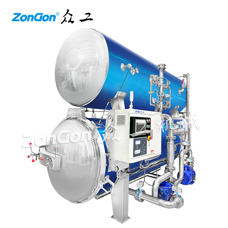 首先,殺菌鍋的底部會注入蒸汽,并與鍋內(nèi)的工藝水混合,通過加熱來升高鍋內(nèi)的溫度。這個過程中,蒸汽的加熱能力使得鍋內(nèi)的溫度能夠達(dá)到高溫狀態(tài),以滿足殺菌的要求。